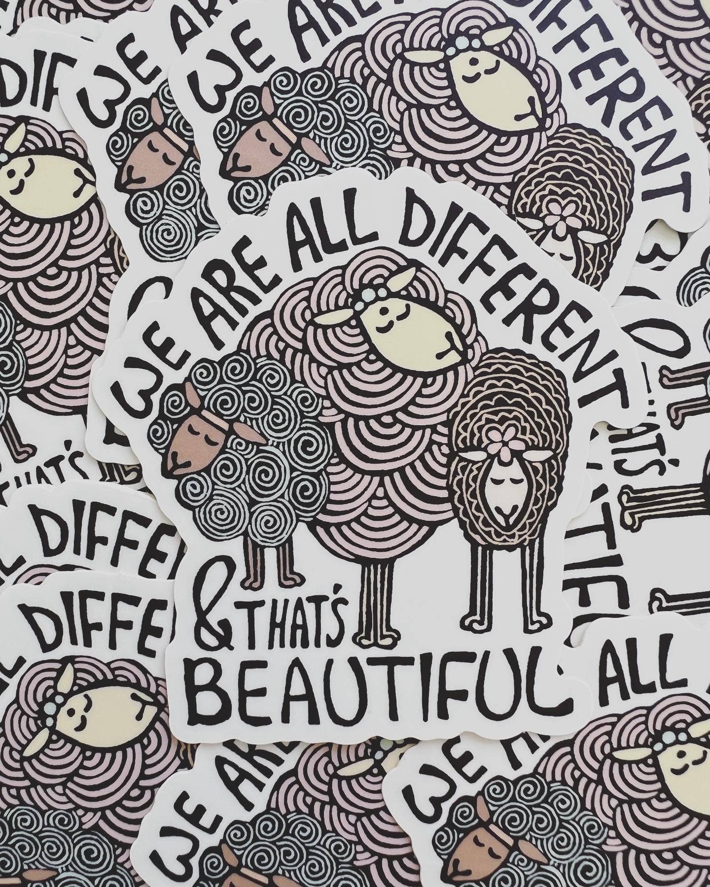 The "Different is Beautiful" design was created to pass on an important message… Be different, unique, stand out! Don't just try to fit in ("like sheep"), create your own path, love who you are, be who you were meant to be ❤